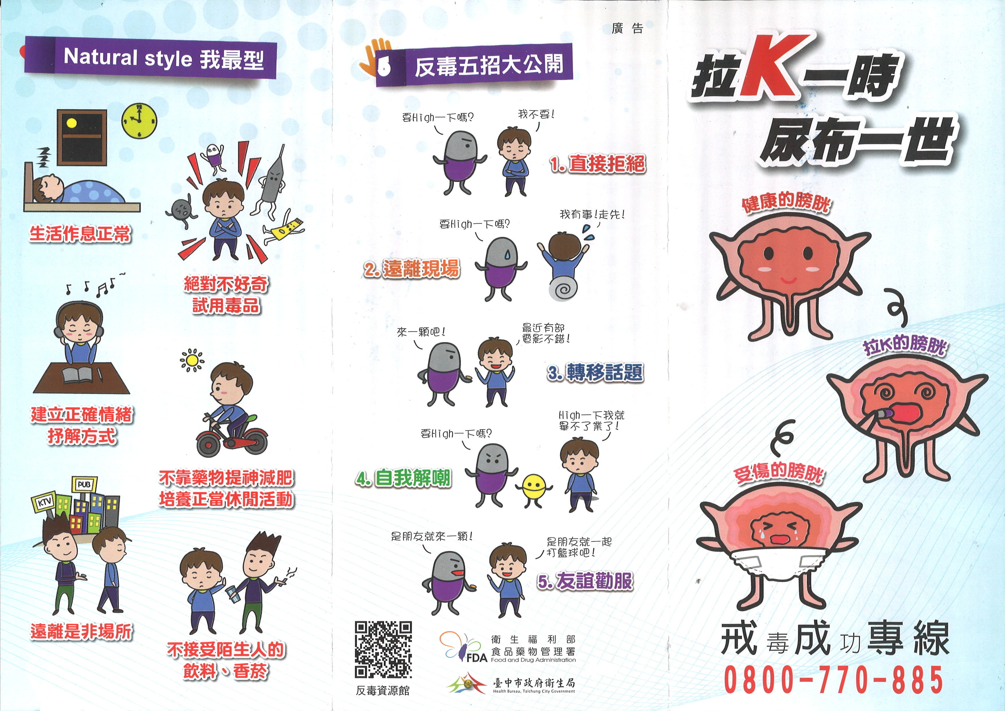 拉K一時尿布一世 ■K他命相關罰則 持有或施用者、持有20g者、引用他人施用個罰則不同。 ■K他命對泌尿系統的傷害 慢性間質性膀胱炎、頻尿、血尿及膀胱壁纖維化等。 戒毒成功專線:0800-770-885