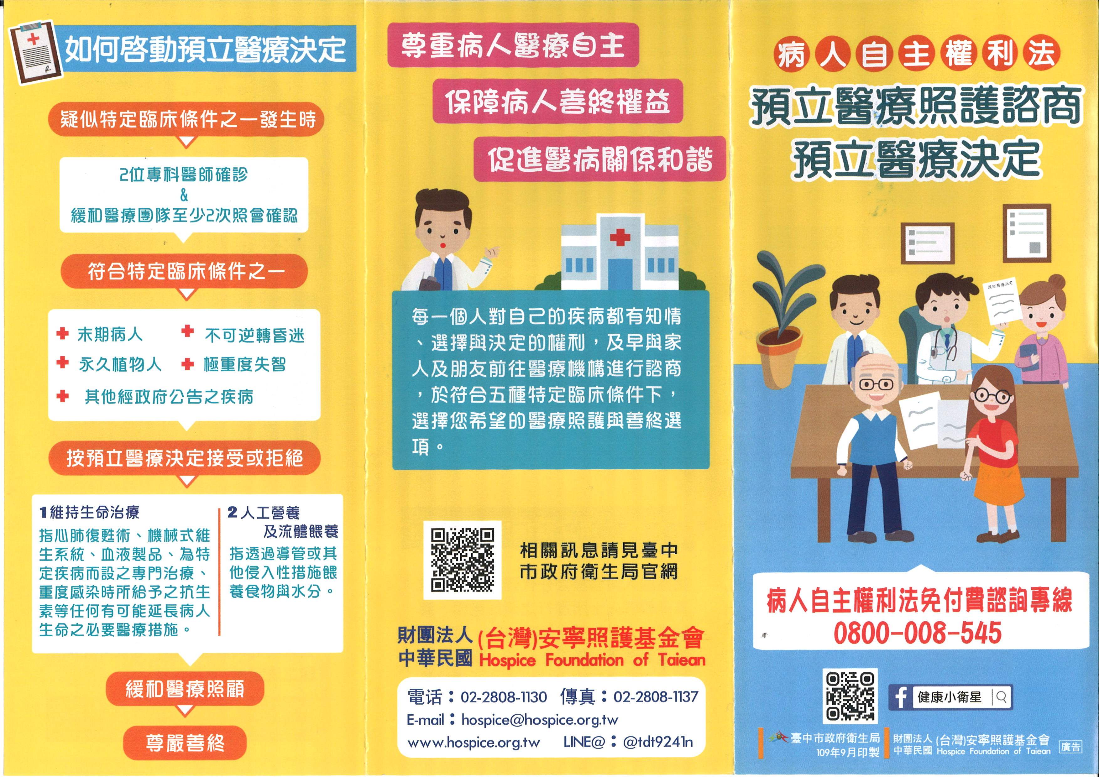 病人自主權利法 是台灣首部以病人為主體的醫療法規,旨在保障病人的知情、選擇和決策權利,並確保其在臨床情況下的自主意願獲得法律保障。 ◎預立醫療照護諮商;尊重病人醫療自主、保障病人善終權益、促進醫病關係和諧 ◎預立醫療決定-如何啟動預立醫療決定